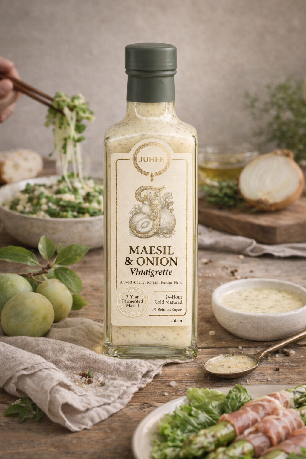 We blend this time-honoured ingredient with fresh onion, olive oil, vinegar and parsley to create a bright, sweet-tangy vinaigrette that brings a touch of Korean heritage to the modern table.